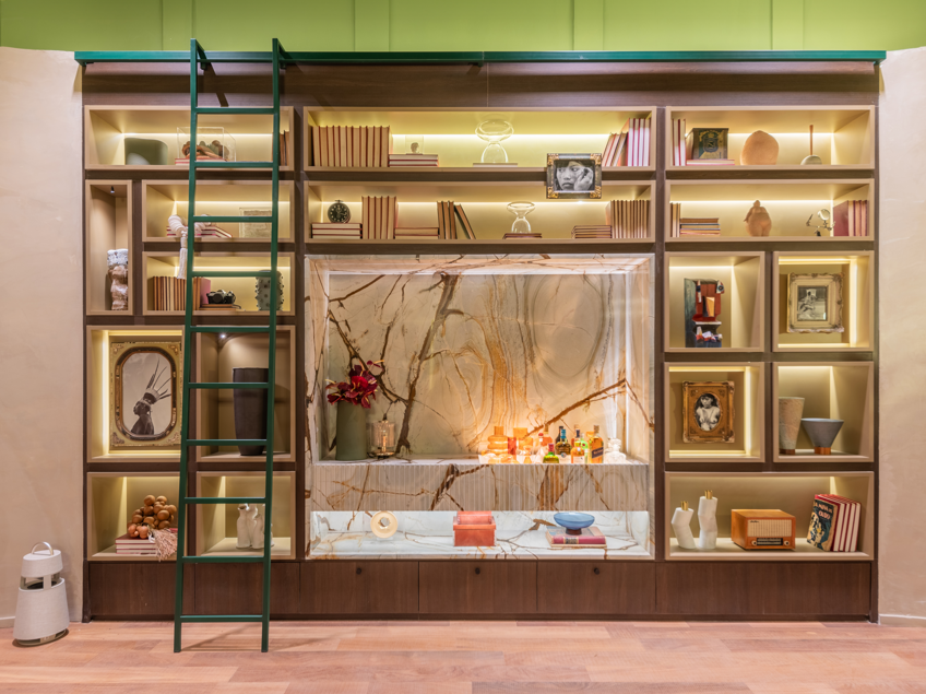 O arquiteto também integrou objetos pessoais e familiares no ambiente, adicionando camadas de história e afeto, como um livro raro, edição especial da Divina Comédia, um rádio e despertador antigos. Estes itens trazidos da casa de sua família adicionam um toque pessoal, voltado para a própria ancestralidade. “O ambiente não é uma vitrine. Quero que as pessoas que adentram o ambiente, sintam uma conexão, como se estivessem em casa. A minha ideia é de um ambiente vivo com histórias, personalidade, brasilidade, memórias e carinhos”, explica.