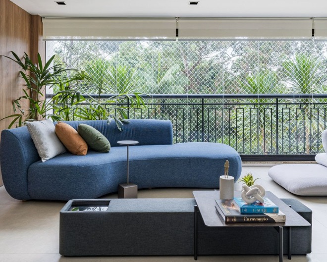 Ele não passa despercebido, realça o décor do ambiente, adere a proposta de transmitir leveza, por se tratar de uma cor fria, e as boas sensações de serenidade e paz. Para a profissional, também é uma boa alternativa para colorir o sofá em uma proposição mais delicada – mas não menos expressiva.