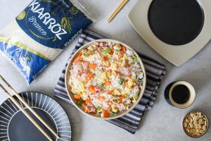 Uma receita de Brochete de carne com farofa de maracujá e arroz birô birô...