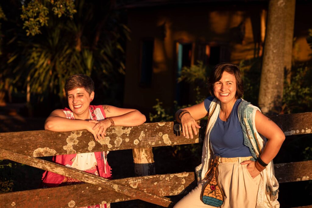 Com base nas manifestações da Capoeira Angola, da cultura popular brasileira e da tradição oral, o duo busca compartilhar, criar e recriar repertórios e vivências. Paula e Camila são treinelas de Capoeira Angola, contadoras de histórias, brincantes, produtoras culturais e pesquisadoras da cultura popular brasileira.