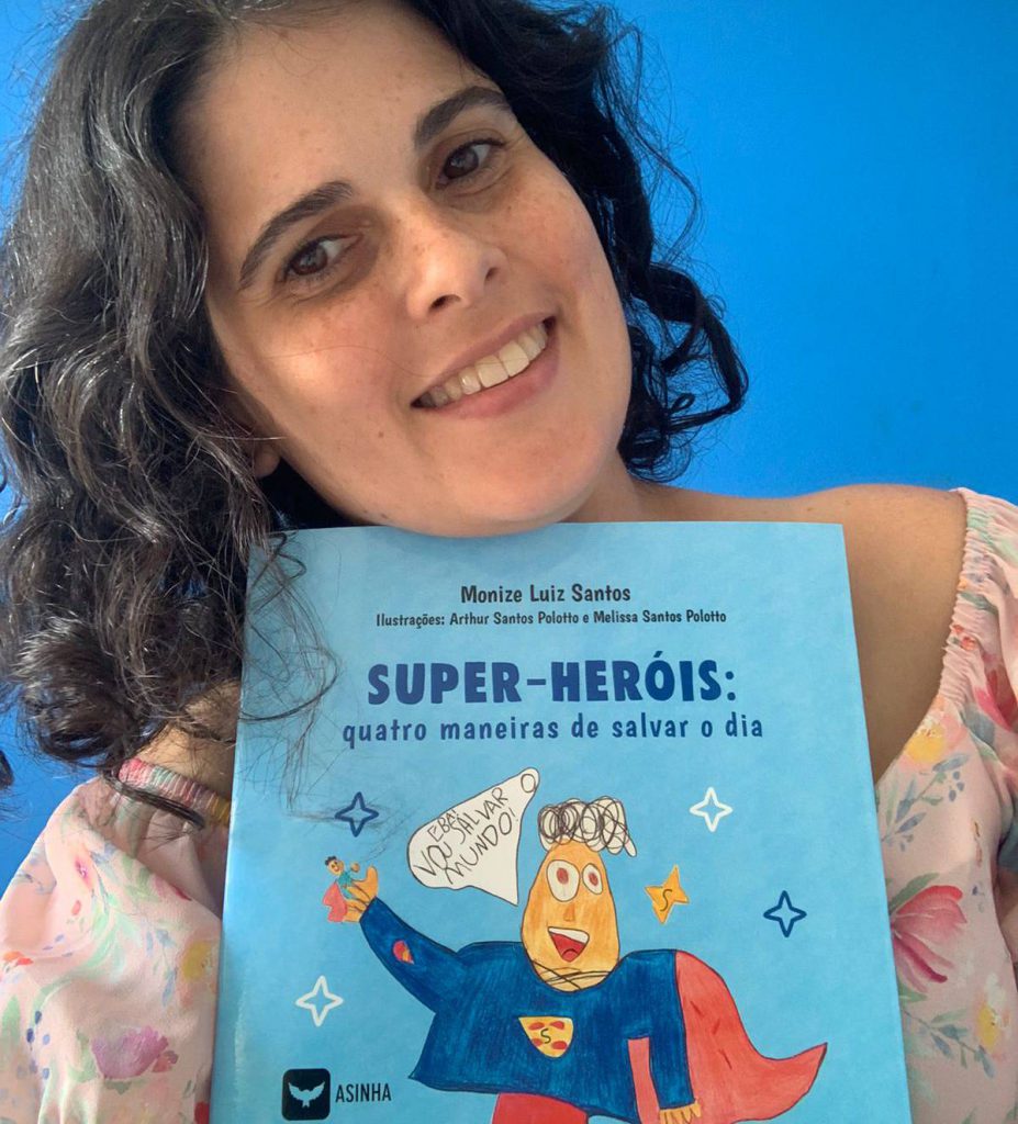 A professora Monize Luiz Santos, de Rio Preto, faz sua estreia na literatura infantil com o livro “Supe-heróis: quatro maneiras de salvar o dia” (Ases da Literatura), disponível na plataforma da Amazon. A obra foi toda ilustrada pelos seus filhos, Melissa, de 6 anos, e Arthur, de 5, que também serviram de inspiração para a história.