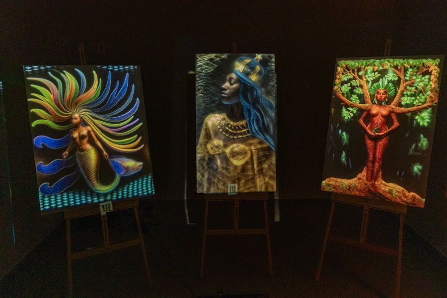 Segundo ela, a utilização de animações e projeções atua como um recurso complementar, pensado para expandir a pesquisa sobre o sagrado feminino e criar novas possibilidades de leitura simbólica das obras.