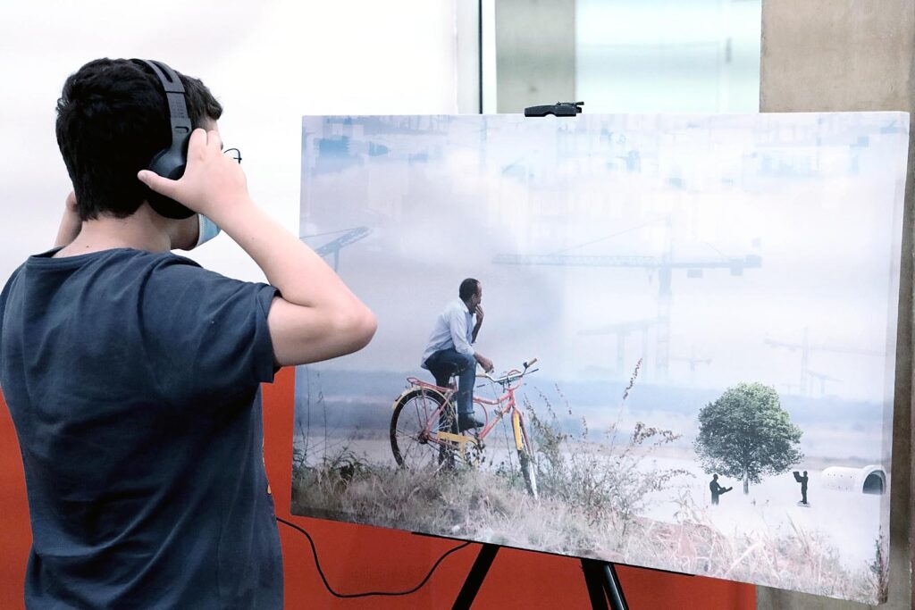 Para acessar os vídeos, além de um smartphone próprio, é recomendado o uso de fones de ouvido. Alguns áudios foram produzidos com microfone binaural, dispositivo que simula o ouvido humano, criando uma sensação sonora de 360º. “Acho incrível essa experiência, que os espectadores podem ter acesso com qualquer fone. Dentro do contexto ficcional de cada tela, ao escanear os QR codes, encontram-se poemas e videoartes sobre aquele universo e informações documentais, de como, onde ou por que aquela foto foi tirada”, explica o artista.
